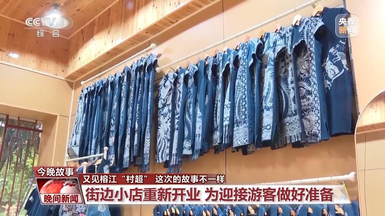 而在距离球场不辽阔的好意思食街上,餐饮和酒店正不竭归附运营,一些面向旅客灵通的文创店铺也从头开业。被巨匠称为“村超兰兰”的刘勤兰,是一位返乡创业的榕江密斯,她的蜡染文创店紧邻“村超”球场。在此前洪灾中,整个一层店面全部被淹。刘勤兰和工东谈主们聚首奋战四天,让店铺以全新面目从头开业。