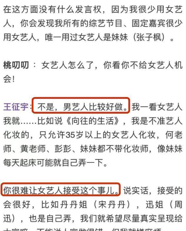 就连《脱口秀》类节目,早期也以男性为主导,对女性的待遇并不友好, 直到行业塌房重建后才有了向平视看皆的迹象。 对这种成立早已俗例,是以当有新的女嘉宾加入时,反而被视为碎裂原来的均衡。 当一个女性的位置被占领后,其他加入的女性就被视为饱胀。 而在这类节目中能被“包容”的女常驻们,又经常只可有一种指定的本性,足够大方、超脱、激昂,不然极易被贴上绿茶、汉子茶、作精的标签。 对女嘉宾的期待,也仅仅落到“保持点缀感”。 而行业也默许这样的结构是合理的,为了让结构合理化,致使会给出不可理喻的情理。 2021年,《向往的生活》导演王征宇在经受采访时就说过,我方通盘的综艺节目、固定嘉宾很少用女艺东说念主,情理是男艺东说念主比拟好作念,而女艺东说念主比拟辛苦。